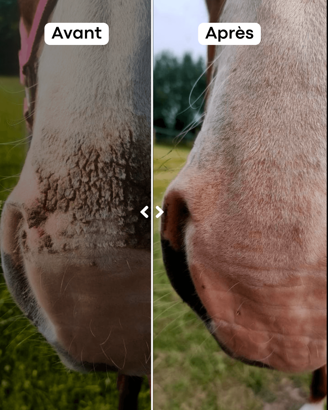 Une amie m’a conseillé le Baume Bobo après l’avoir testé sur son cheval, et je ne regrette pas d’e lui avoir fait confiance ! Ma jument avait fait une sorte de photosensibilisation sur le nez et en quelques jours seulement (3 jours avec une application tous les jours) la peau était réparée et cicatrisée +++
